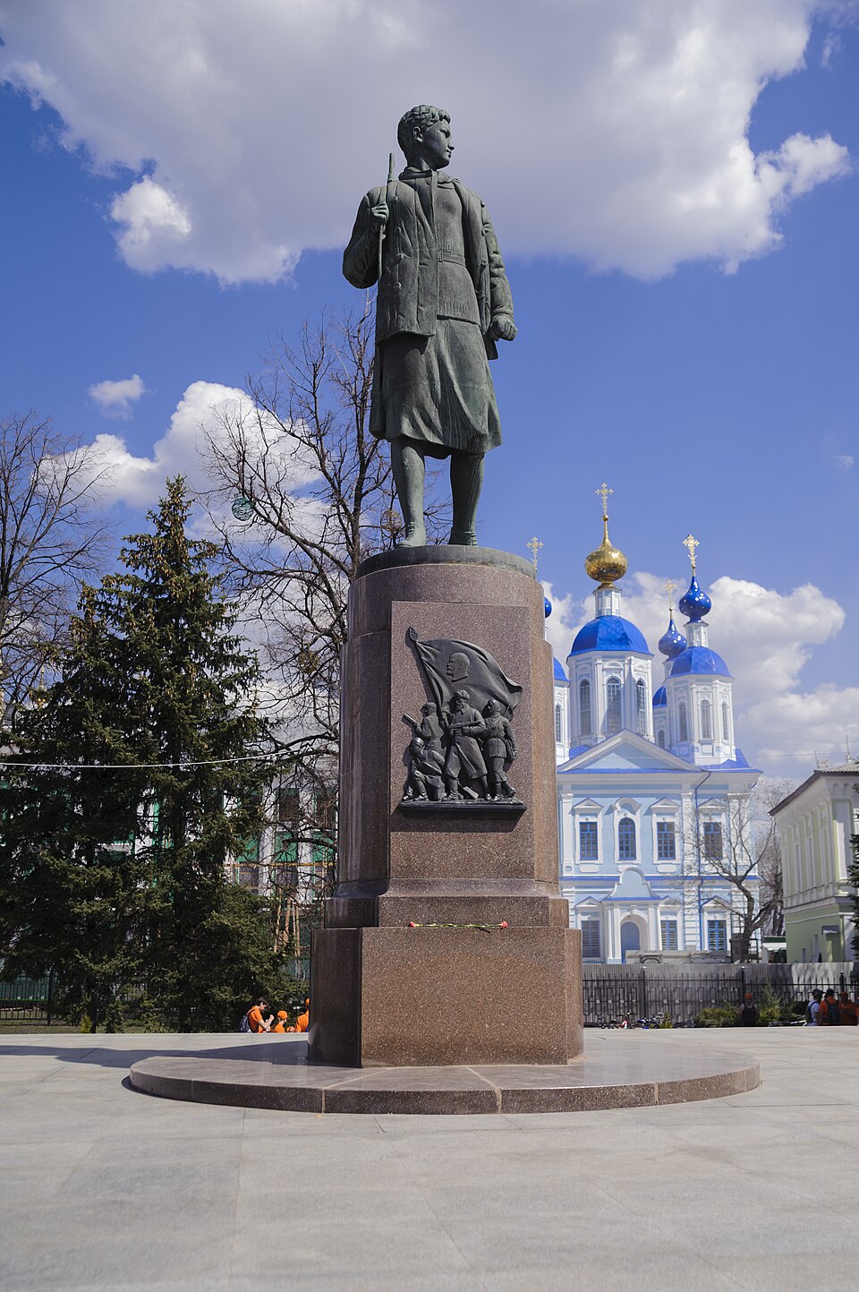 Манизер Матвей Генрихович (1891-1966), скульптор, Народный художник СССР. Будущий скульптор родился в Санкт-Петербурге, в семье художника Генриха Манизера. Вокруг мальчика были созданы благоприятные условия для его учёбы и художественного развития. Вспоминая свои детские годы, М. Манизер говорил, что постоянное пребывание в мастерской отца среди картин, рисунков и слепков, безусловно, способствовало воспитанию в нём художника. Он с восьми лет начал заниматься рисунком и лепкой в начальной школе Штиглица под руководством известного скульптора академика М. А. Чижова. В 1911 г. поступает в Академию художеств, где учился у скульпторов Г. Р. Залемана и В. А. Беклемишева. В 1914 г. Манизер окончил физико-математический факультет Петербургского университета, а в 1916 – скульптурный факультет Академии художеств. Матвей Генрихович любил музыку и превосходно играл на виолончели. В 1919 г. в целях завершения музыкального образования он поступил на старший курс консерватории. Два года он выступал в профессиональных оркестрах в Павловске, Кронштадте, Петрозаводске, Пскове и других городах. Математик, скульптор и музыкант – Манизер своё будущее, своё истинное призвание видел в скульптуре, которой и посвятил полвека творческой жизни. Монументальное воплощение образов вождей и героев было основной темой его творчества. Так, в разное время, он выполнил памятники Володарскому и «Жертвам 9 января 1905 года» в Ленинграде, Чапаеву в городе Куйбышеве (ныне Самара), большое количество памятников Ленину и Сталину. В Тамбове в 1947 г. был установлен памятник Зое Космодемьянской. В основу сюжетной трактовки скульптуры художник взял момент ухода Зои на фронт, в партизанский отряд. Этот памятник - не единственная работа Манизера на Тамбовщине. В историческом центре Мичуринска в 1950 г. установлен памятник Ивану Владимировичу Мичурину, который является объектом культурного наследия (памятником истории и культуры) федерального значения. Поза великого учёного свободна, в руке он держит яблоко, взгляд устремлен вдаль. На перроне вокзала в Мичуринске установлен бюст И. В. Мичурину. М. Г. Манизер принимал участие в оформлении места захоронения ученого: барельеф Мичурина, бронзовая гирлянда на надгробной плите и на стеле - работы скульптора. К работе над образом садовода-новатора Манизер возвратился еще раз, когда работал над оформлением нового здания Московского университета на Ленинских горах. Перед зданием установлены четыре гранитных бюста - И. П. Павлова, И. В. Мичурина, Д. И. Менделеева, Н. Е. Жуковского. Литература: Матвей Генрихович Манизер / авт.-сост. П. М. Сысоев. – Москва: Советский художник, 1969. – 195 с. Популярная художественная энциклопедия: Архитектура. Живопись, Скульптура. Графика. Декоративное искусство / гл. ред. В. М. Полевой. Кн. I. – Москва: Советская энциклопедия, 1986. – С. 427. Лениниана скульптора М. Г. Манизера / авт.-сост. О. М. Манизер, Г. М. Манизер. – Москва: Изобразительное искусство, 1984. – 126 с. Фотографии из архива Информационно-библиографического отдела и открытых источников сети Интернет.